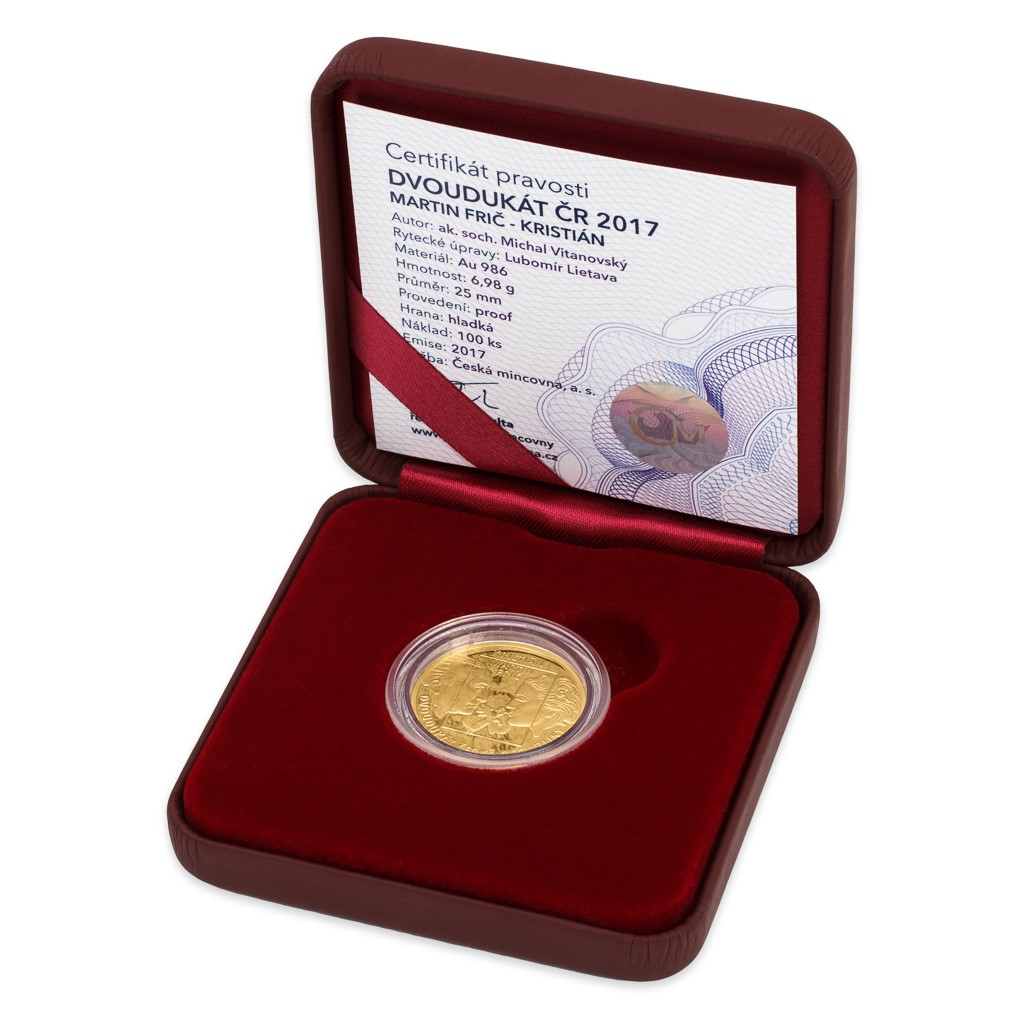 Motivem zlatého dvoudukátu z Dukátové řady České mincovny s ročníkem 2017, která je věnována meziválečné kultuře první republiky, je nesmrtelný film pro pamětníky Martina Friče – Kristián.