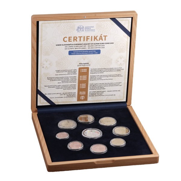 Set of Slovak coin 2026 - Winter olympic games Milano - Cortina wooden box proof