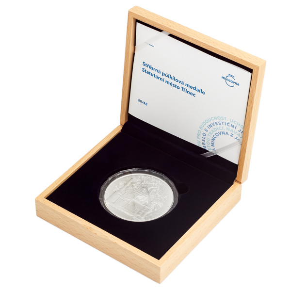 Silver half-a-kilo medal Statutory town of Třinec stand numbered