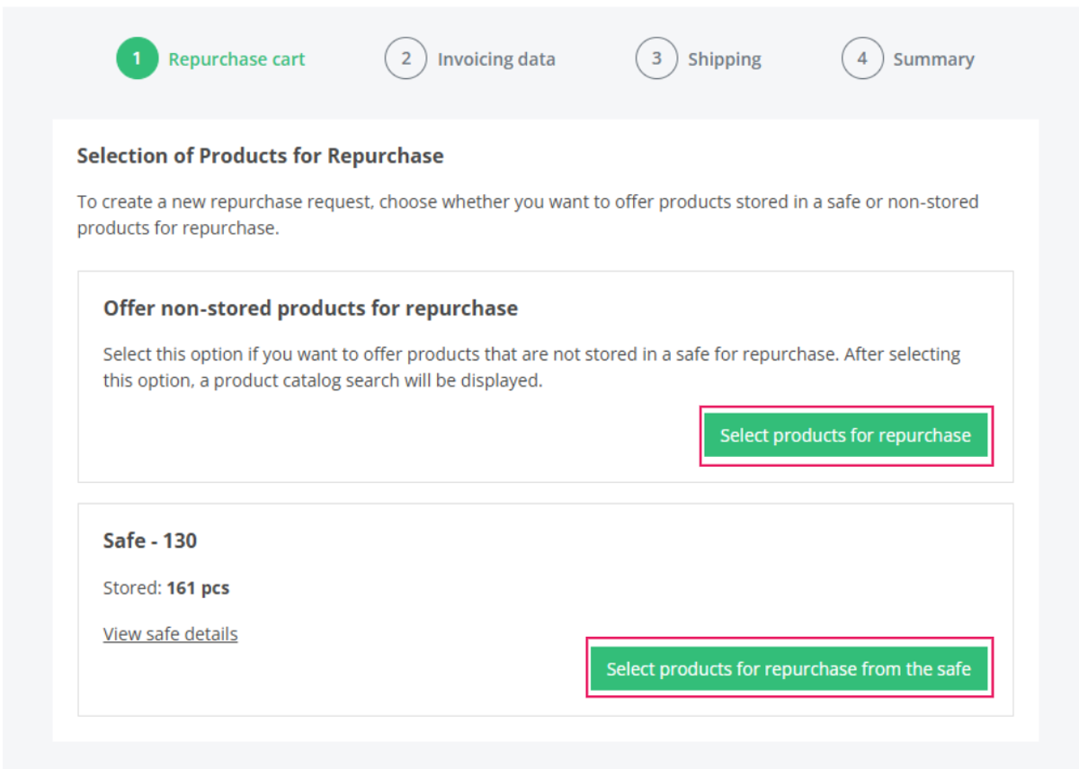 a. By searching for a product in the catalog – On our e‑shop, find the product you wish to offer for repurchase. In the product detail, then click the Offer to Repurchase button.