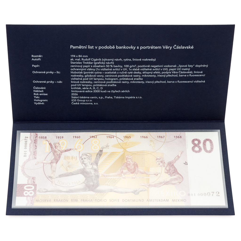 Věra Čáslavská proslula jako nejúspěšnější česká sportovkyně všech dob i jako nejlepší sportovkyně celého světa. Stala se však také ikonou odvahy a nezlomnosti. Hold jí vzdává pětidílná sada stříbrných mincí České mincovny.