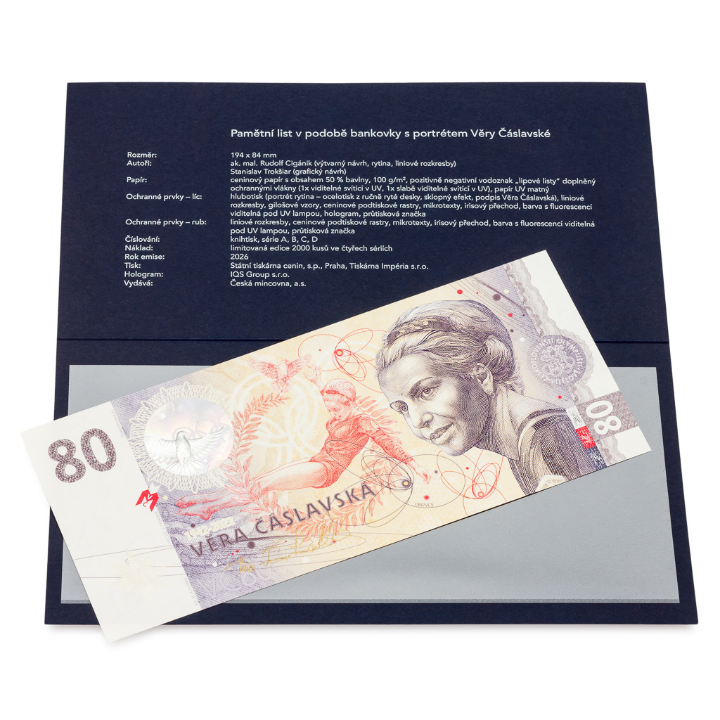 Sada pěti uncových stříbrných mincí vychází v nákladu čítajícím 300 kusů. Nedílnou součástí každé sady je paměťovka – čili pamětní list v podobě bankovky vyrobený Státní tiskárnou cenin.