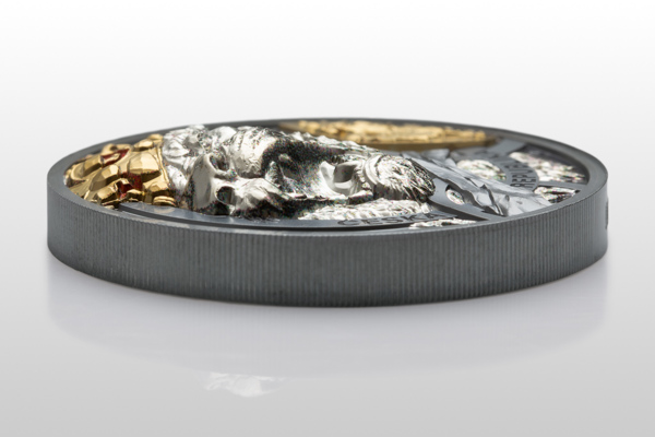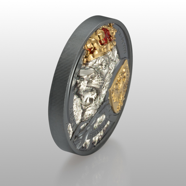 Unikátny variant investičnej mince Český lev, ktorý vznikol v spolupráci Českej mincovne a spoločnosti CIT Coin, sa pýši extrémne vysokým reliéfom. Mimoriadna hĺbka plastiky poskytla jedinečnú príležitosť pre úpravu reliéfu, a lev tak má – oproti ďalším minciam s ročníkom 2025 – otvorenú tlamu. Ručiaca šelma sa objavuje v dvoch trojských unciach rýdzeho striebra skrášlených selektívnym pozlátením, kolorovaním a technológiou black proof. Minca je navyše číslovaná na hrane.