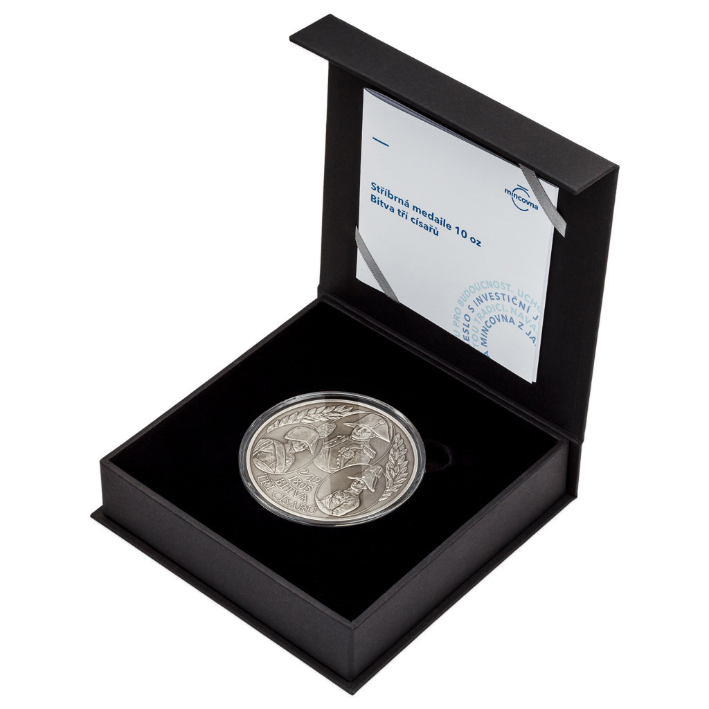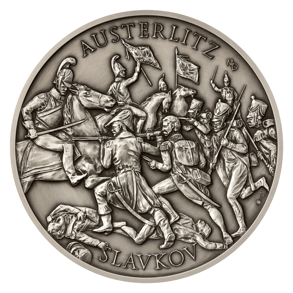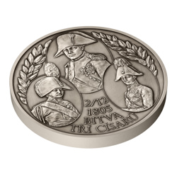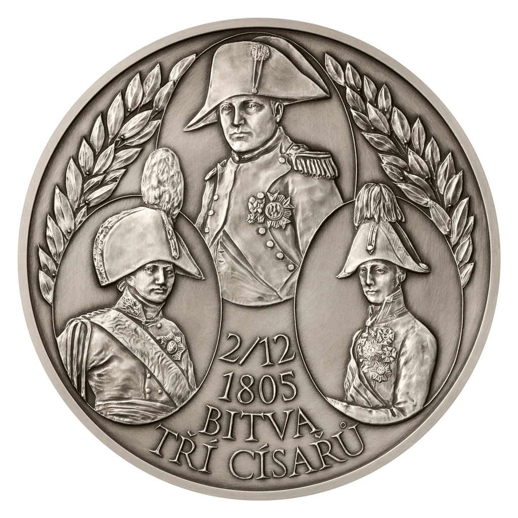 Bitka troch cisárov patrí k najslávnejším vojenským stretnutiam svetových dejín. Pretože sa odohrala na území českých krajín, hold jej vzdáva strieborná pamätná medaila Českej mincovne.