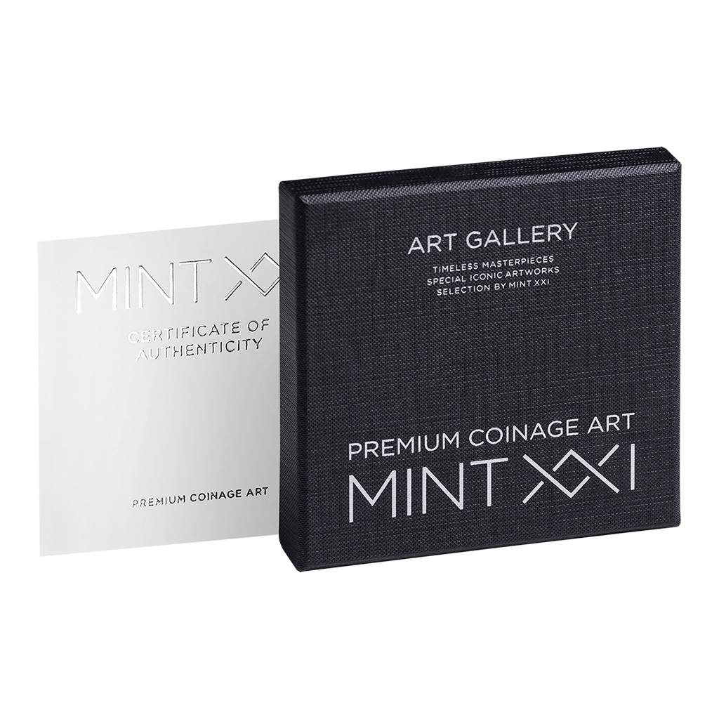 Mince je uložena do elegantního rámečku, díky kterému si umělecké dílo můžete jednoduše vystavit.