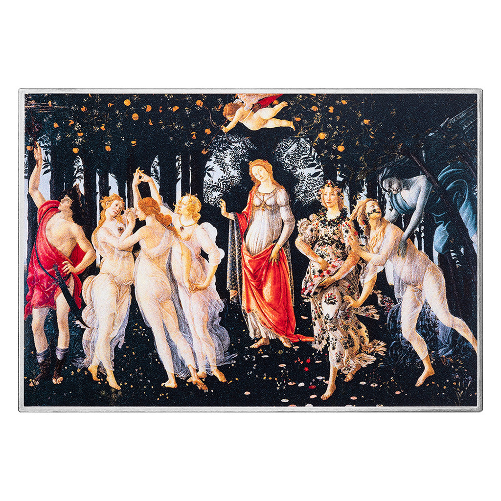 Prostřednictvím stříbrných mincí připomíná mincovna Mint XXI nejslavnější obrazy světového umění. Pochopitelně mezi nimi nesmí chybět Primavera Sandra Botticelliho.