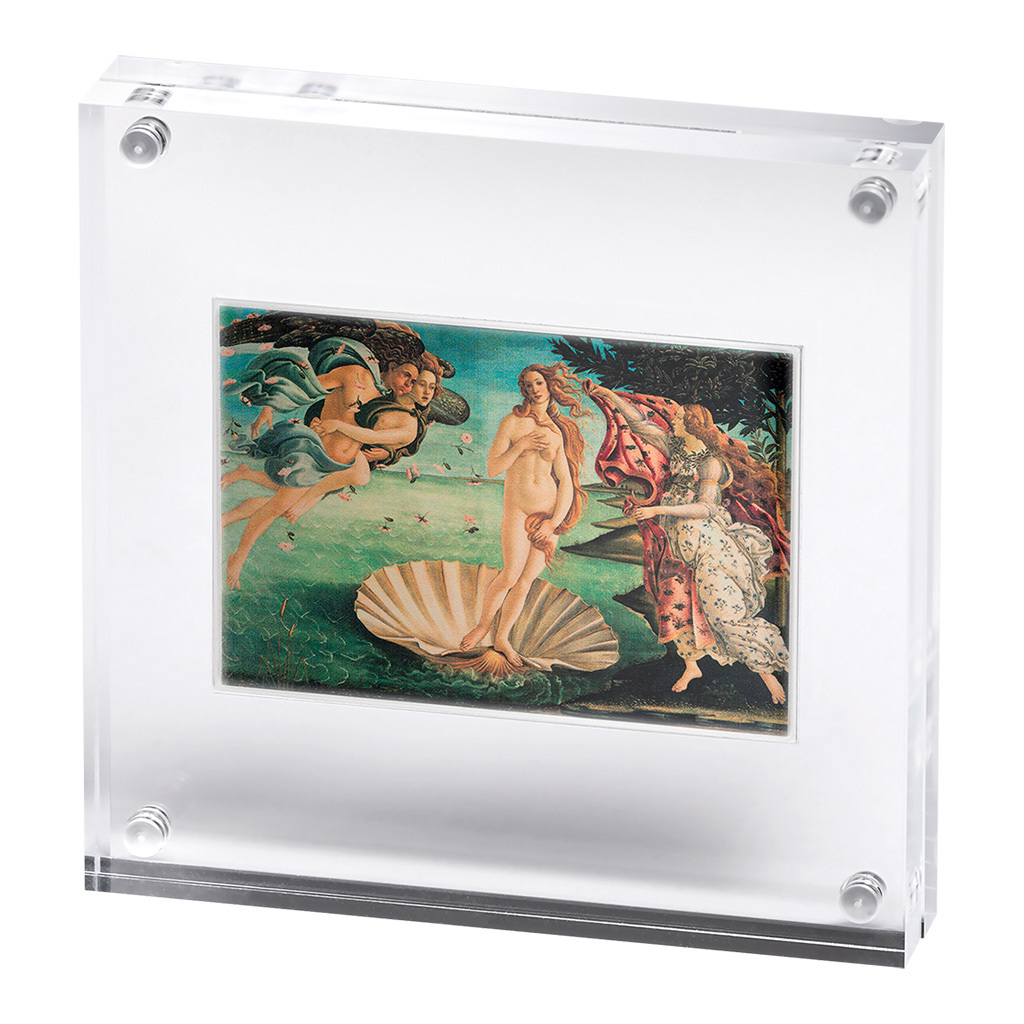 Prostřednictvím stříbrných mincí připomíná mincovna Mint XXI nejslavnější obrazy světového umění. Pochopitelně mezi nimi nesmí chybět Zrození Venuše Sandra Botticelliho.