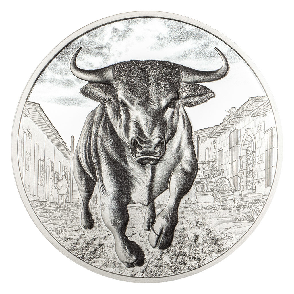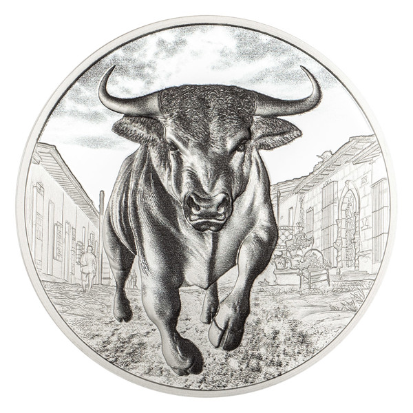 Reverzní strana mince předkládá hněv zhmotněný do podoby rozzuřeného býka, který se řítí rovnou na pozorovatele. Averzní strana pak nese jméno a portrét panovníka Karla III. a nominální hodnotu 5 DOLLARS (NZD) – čili náležitosti emitenta mince, kterým jsou Cookovy ostrovy.